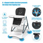 A CADEIRA ELEVADA ÚNICA Como manter nossos bebês s é uma questão que temos explorado. Por isso, concebemos esta cadeira alta em forma de A para melhorar a estabilidade. Com base na estrutura triangular comum, dois suportes robustos são adicionados em ambos os lados da cadeira alta, o que aumenta muito a estabilidade. Ao mesmo tempo, o arnês de segurança de 5 pontos e o defletor de segurança podem efetivamente impedir que o bebê escorregue. Sugerimos que a cadeira alta seja usada para bebês de 0 a 36 meses.