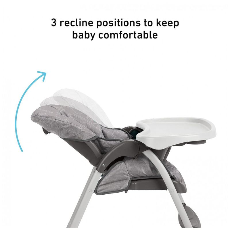 A cadeira alta dobrável ultrafina foi projetada para caber em espaços compactos.