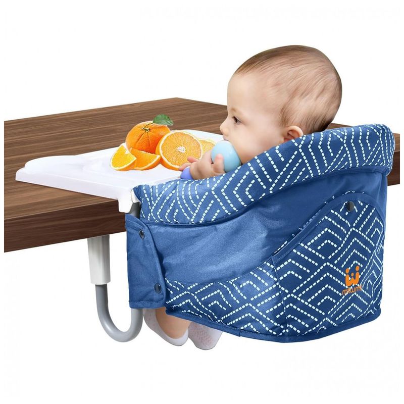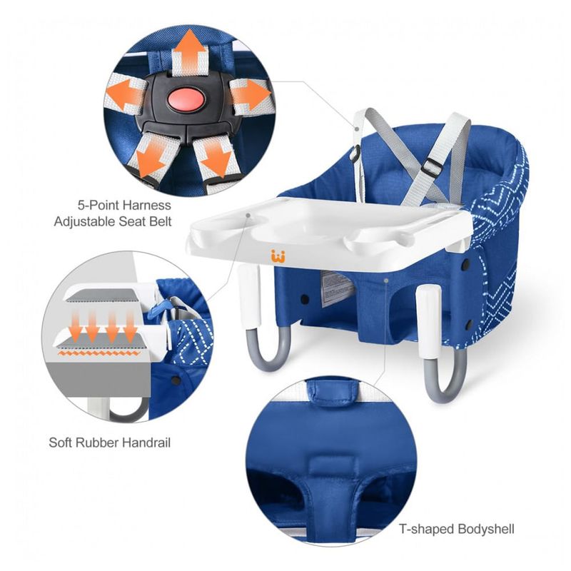 Cadeira de Alimentação Portátil com Encaixe em Mesa e Bandeja, MTWML, Azul