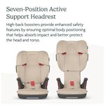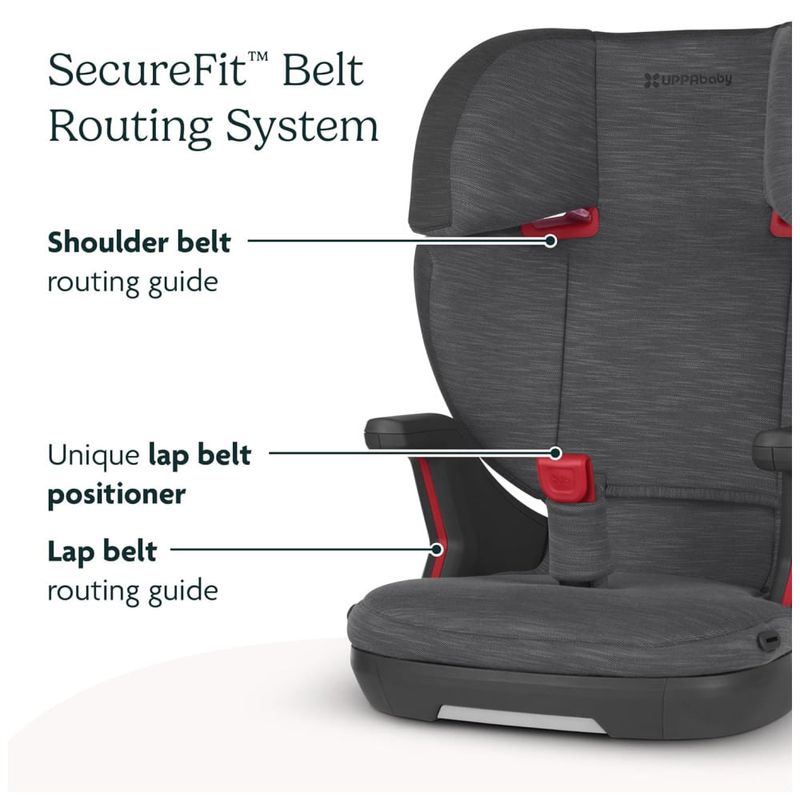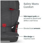 Para segurança, possui pods de proteção contra impactos laterais que absorvem e dispersam as forças em caso de colisão. Os posicionadores de cinto de segurança permitem que a criança ajuste o cinto de forma segura por conta própria. O encosto do assento é construído com espuma EPP e espuma de memória para mitigar as forças de impacto.