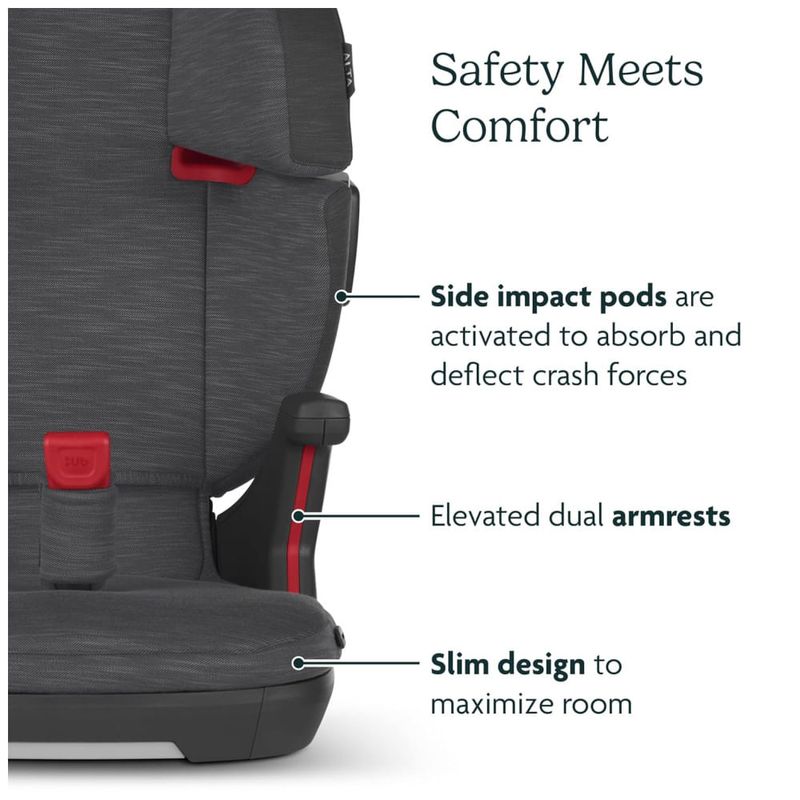 O Alta V2 é um assento elevatório projetado para crianças com peso entre 18,14 e 45,35 quilos, e altura máxima de 144 cm. Ele proporciona um posicionamento adequado do assento e do cinto, combinando estilo, conforto e praticidade. Certificado pelo GREENGUARD Gold, garante uma qualidade de ar mais saudável com baixas emissões químicas.