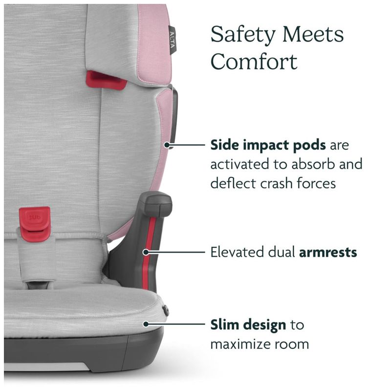 O Alta V2 é um assento elevatório projetado para crianças com peso entre 18,14 e 45,35 quilos, e altura máxima de 144 cm. Ele proporciona um posicionamento adequado do assento e do cinto, combinando estilo, conforto e praticidade. Certificado pelo GREENGUARD Gold, garante uma qualidade de ar mais saudável com baixas emissões químicas.
