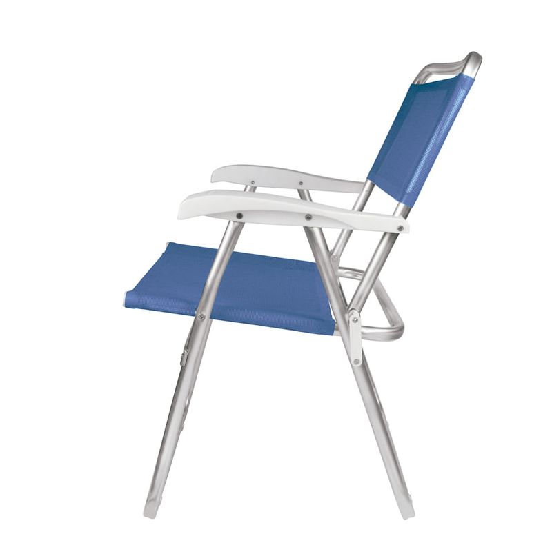 A Cadeira Master Alumínio Fashion é um item que não pode faltar na sua casa. Em alumínio, ela fica ainda mais leve e durável, mesmo em regiões litorâneas. É excelente para praia, campo ou para um final de tarde com os amigos na varanda. Prática e fácil de carregar, ocupa pouco espaço quando dobrada, cabendo em qualquer cantinho. Anatômica, possui tubos estrategicamente posicionados para não pressionar as costas nem as articulações do corpo, tornando-se confortável para pessoas de todas as estaturas. Extremamente resistente, conta com estrutura fabricada pela Mor em alumínio de excelente qualidade. Além disso, suas peças plásticas são feitas em polipropileno, sua tela em 100 % poliéster com revestimento em PVC, além de suas sapatas antiderrapantes, que proporcionam ainda mais segurança ao utilizá-la. Tem capacidade para suportar até 120 Kg.