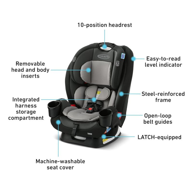 A Cadeirinha de Carro Conversível Graco TriRide 3 em 1 mantém seu pequeno seguro desde bebê até criança grande, com 3 modos de uso: arnês de frente para trás de 2,3 a 18 kg, arnês virado para a frente de 12 a 24 kg e booster com encosto alto de 18 a 45 kg. O Sistema de Arnês Ajustável Simply Safe Adjust sem a necessidade de rosqueamento permite ajustar a altura do apoio de cabeça e do arnês em um só movimento, poupando tempo e garantindo que seu filho esteja devidamente protegido. Escolha a altura perfeita do apoio de cabeça entre 10 posições e ajuste o assento em 6 posições reclináveis para uma instalação melhor. O indicador de nível de fácil leitura elimina as dúvidas na instalação, e a cadeirinha é equipada com o sistema LATCH para uma instalação mais simples. O compartimento integrado de armazenamento do arnês mantém o arnês seguro sem a necessidade de remoção, enquanto está no modo booster. Os guias de cinto em forma de loop ajudam a posicionar corretamente o cinto de segurança do veículo sobre a criança no modo booster com encosto alto. 2 porta-copos fáceis de limpar mantêm as bebidas e lanches da criança ao alcance, e o revestimento do assento é confortável e lavável à máquina para sua conveniência. Os inserts macios removíveis para cabeça e corpo ajudam o bebê a se sentir confortável e seguro. A armação reforçada com aço oferece resistência e durabilidade para anos de uso. Esta cadeirinha de carro é Graco ProtectPlus Engineered para ajudar a proteger em colisões frontais, laterais, traseiras e capotamentos. Cadeirinha 3 em 1 que cresce com a criança, desde arnês de frente para trás de 2,3 a 18 kg, arnês virado para a frente de 12 a 24 kg até booster com encosto alto de 18 a 45 kg. Graco ProtectPlus Engineered, combinação dos testes de colisão mais rigorosos que ajudam a proteger seu filho em colisões frontais, laterais, traseiras e capotamentos. Sistema de Arnês Ajustável Simply Safe Adjust permite ajustar o apoio de cabeça e o arnês juntos em um só movimento. Escolha a altura perfeita do apoio de cabeça entre 10 posições para um ajuste mais seguro à medida que a criança cresce. 6 posições reclináveis mantêm a criança confortável e ajudam em uma instalação melhor.