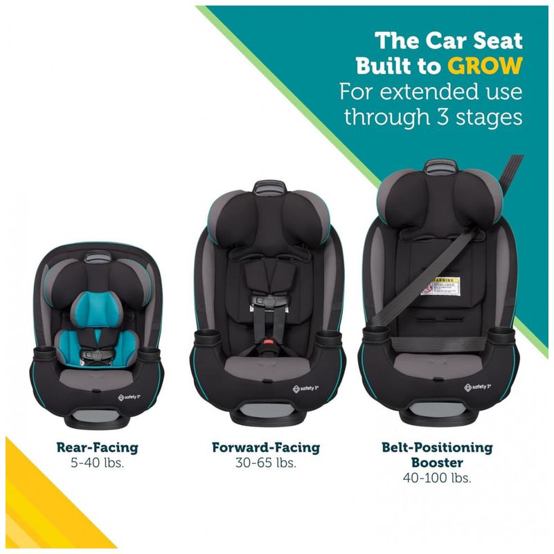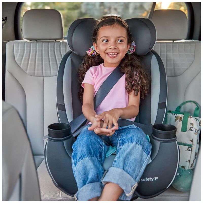Obtenha a cadeirinha de carro projetada para acompanhar o crescimento! Desde a primeira viagem para casa do hospital até os passeios de carona para o futebol, a Cadeirinha de Carro Conversível Slim Safety 1st Grow and Go All-in-One proporcionará ao seu filho uma viagem segura e confortável. Projetada para durar desde os primeiros momentos com seu filho, suportando de 2,3 kg a 45,4 kg, pode ser utilizada nos modos de uso voltado para trás, voltado para frente e booster. Ajusta-se facilmente em crianças em 3 estágios: voltado para trás (2,3 a 24 kg, 48,3 a 101,6 cm), voltado para frente (13,6 a 29,5 kg, 87,4 a 124,5 cm) e booster (18,1 a 45,4 kg, 110,2 a 132,1 cm). O ajuste real pode variar. Conforme seu pequeno cresce, é possível ajustar facilmente o apoio de cabeça e o arnês com um simples movimento, sem a necessidade de reenfiar o arnês ou reinstalar a cadeirinha. A alça do arnês e o arnês possuem múltiplas opções de ajuste para se adequarem ao crescimento das crianças. O uso do cinto de segurança do veículo fica mais simples com o caminho do cinto visível. Graças ao design amigável para os pais, a limpeza é fácil. O tecido do assento pode ser facilmente removido sem desinstalar o arnês, sendo lavável à máquina e seguro para secadora. Os 2 porta-copos transportam bebidas e lanches favoritos, são facilmente removíveis e podem ser lavados na lava-louças. Retirar e colocar as crianças no carro é mais fácil com as presilhas do arnês que mantêm as tiras fora do caminho. Projetada para o conforto das crianças, a cadeirinha inclui duas almofadas ajustáveis para um encaixe perfeito. Com 3 posições de reclínio, é fácil obter um ajuste ideal no seu carro.