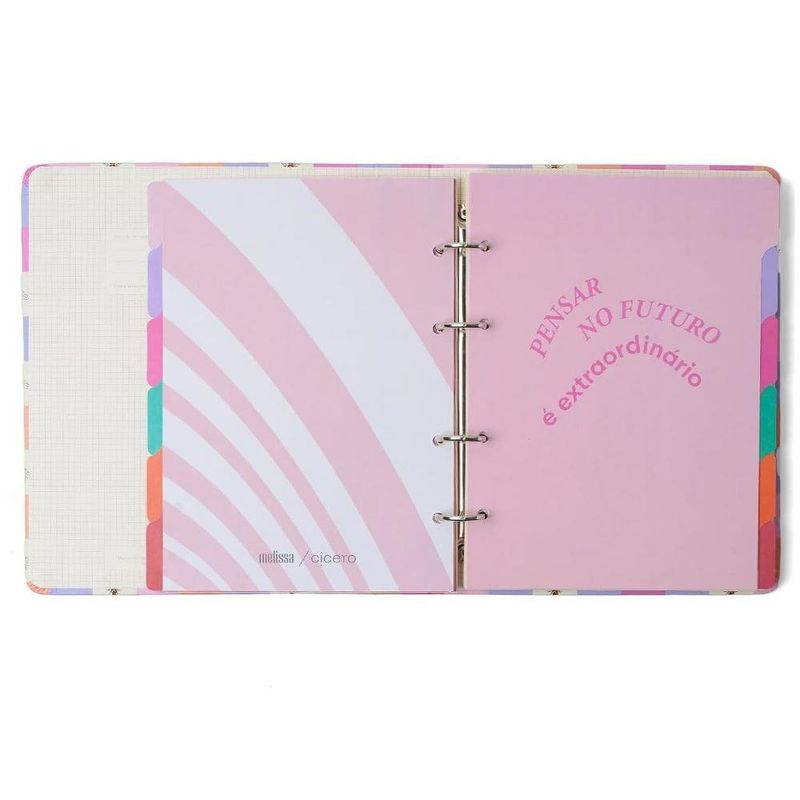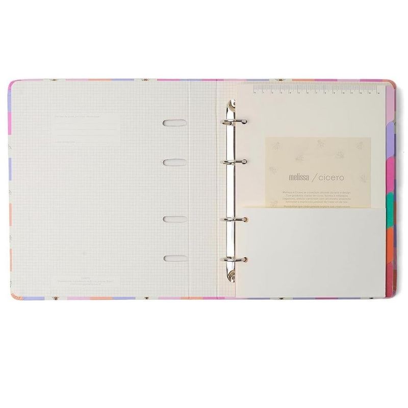 Caderno Criativo Argolado Melissa Pautado 17x24 Casinha das Abelhas é um fichário com 4 furos e um elástico de segurança, com estampas exclusivas criadas para sua rotina ficar sempre cheia de estilo e super organizada. Um produto completo e versátil para organizar ideias, estudos, clientes, receitas e o que mais você precisar.