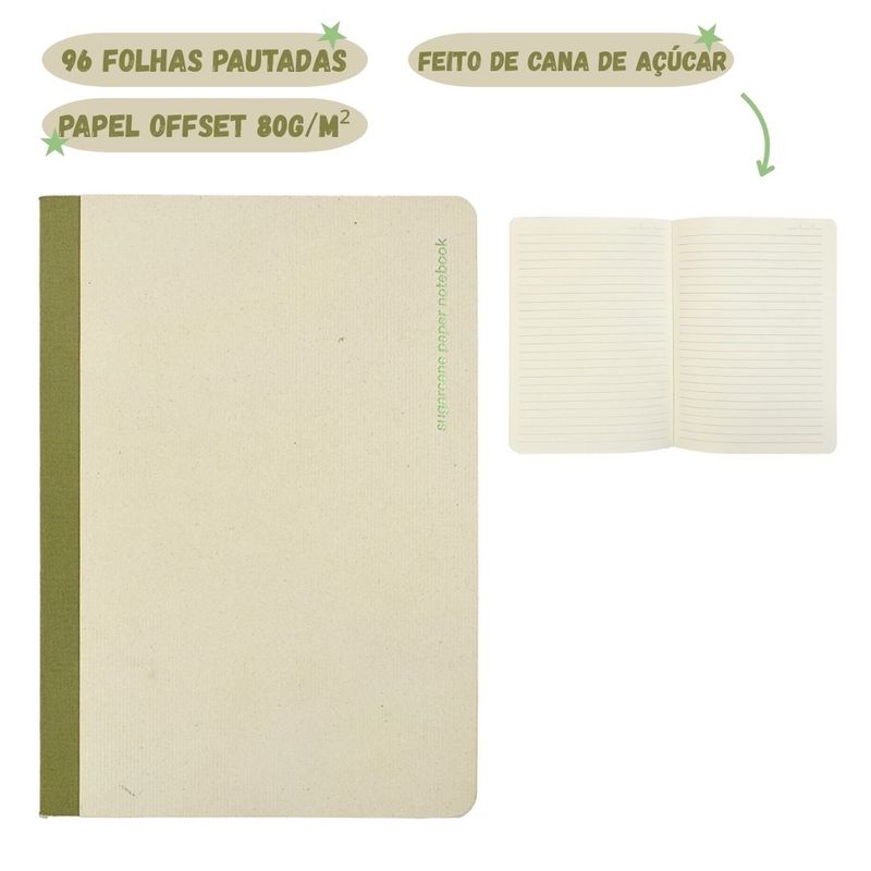 - Não forças as argolas e zíper. O Caderno com papel de cana-de-açúcar é uma opção sustentável e prática para o dia a dia. Compacto e ideal para anotações, estudos e uso no trabalho, é produzido com papel ecológico à base de fibra de cana-de-açúcar, oferecendo uma escrita suave e consciente com o meio ambiente. Com design moderno, capa resistente e miolo pautado, une funcionalidade, estilo e compromisso ambiental em um só produto.