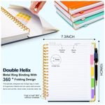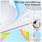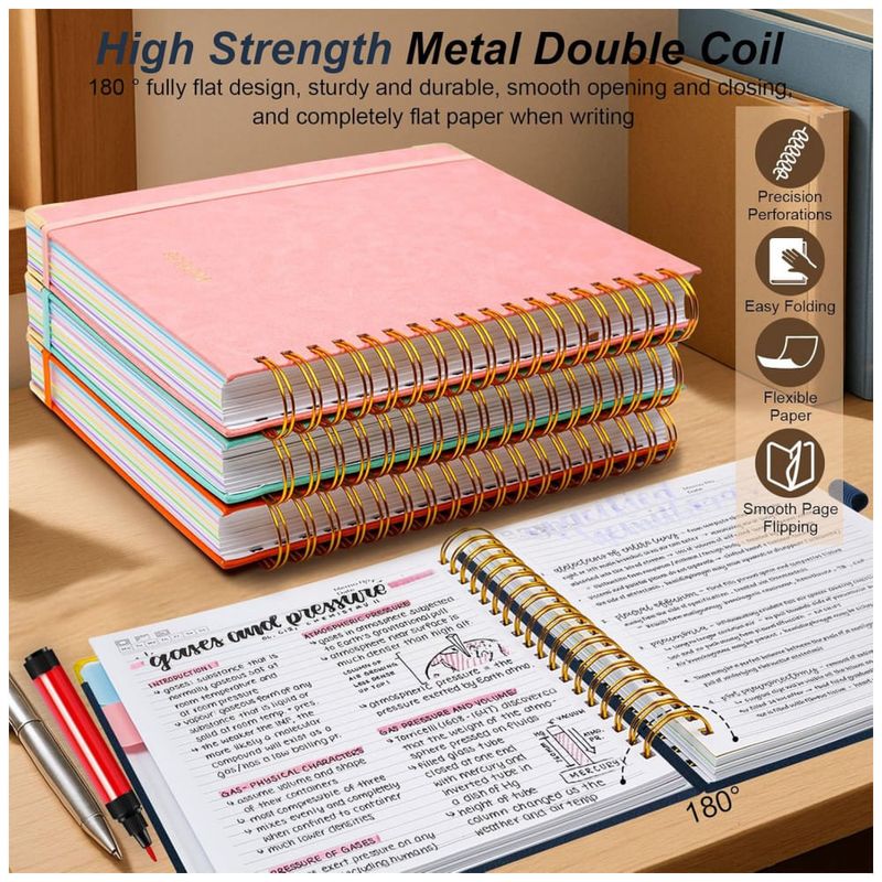O sistema de organização com 5 divisórias móveis e 8 etiquetas autoadesivas possibilita separar matérias, projetos ou categorias em um único caderno. As folhas utilizam papel mais espesso, projetado para reduzir marcas de tinta no verso, favorecendo o uso de ambos os lados da folha em anotações contínuas.
