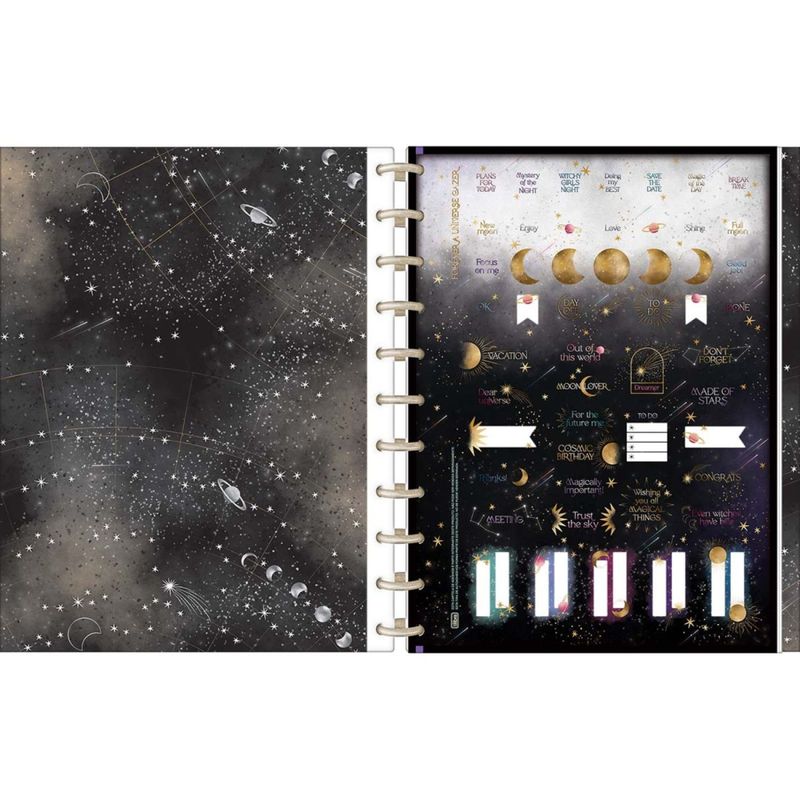 O Caderno Tilidisco 1 Matéria Magic da Tilibra é a revolução para quem busca praticidade, organização e tecnologia em um só produto. Com formato 200mm x 275mm e gramatura 90 g/m², ele oferece espaço suficiente para todas as suas anotações. A capa dura removível contém 11 discos dourados que permitem a organização modular das folhas, além de uma bolsa plástica para guardar documentos e adesivos para decorar as páginas. Mas o grande diferencial do Caderno Tilidisco Magic é a integração com o aplicativo Tilibra Connect, disponível gratuitamente na Apple Store e Google Play: Digitalize suas anotações com agilidade: Escanear suas anotações nunca foi tão fácil! Com o Tilibra Connect, você digitaliza suas páginas instantaneamente e organiza suas anotações de forma digital. Elabore perguntas e respostas com o conteúdo escaneado: Crie questionários e teste seus conhecimentos sobre o conteúdo estudado. O Tilibra Connect te ajuda a revisar e fixar o conteúdo de forma divertida e eficaz. Crie e revise fichas: Elabore fichas de estudo completas e personalizadas para cada matéria. O Tilibra Connect te auxilia na organização e revisão do conteúdo, facilitando seu aprendizado