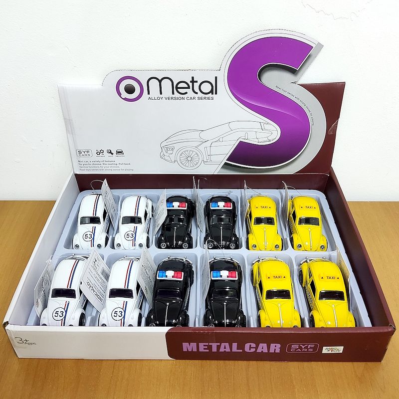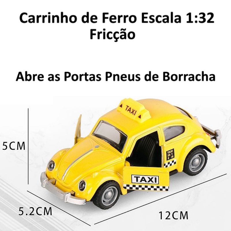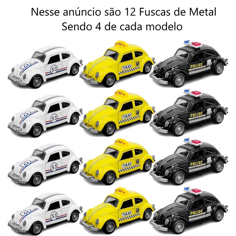Caixa com 12 Carrinhos em Miniatura de Ferro Fusca com Abertura de Portas com Caixa Display
