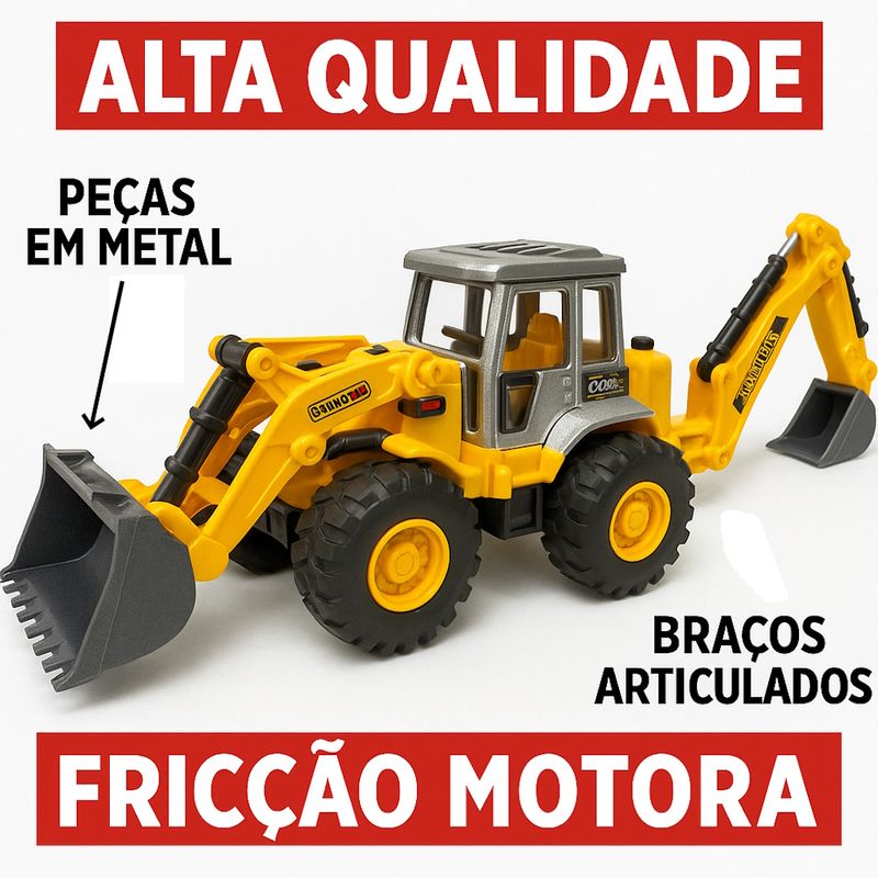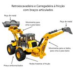 Trator Carregadeira Retroescavadeira de Brinquedo com Fricção Articulado Caixa Fechada Display 4 Unidades Atacado Revenda Lembrancinha Festa Infantil