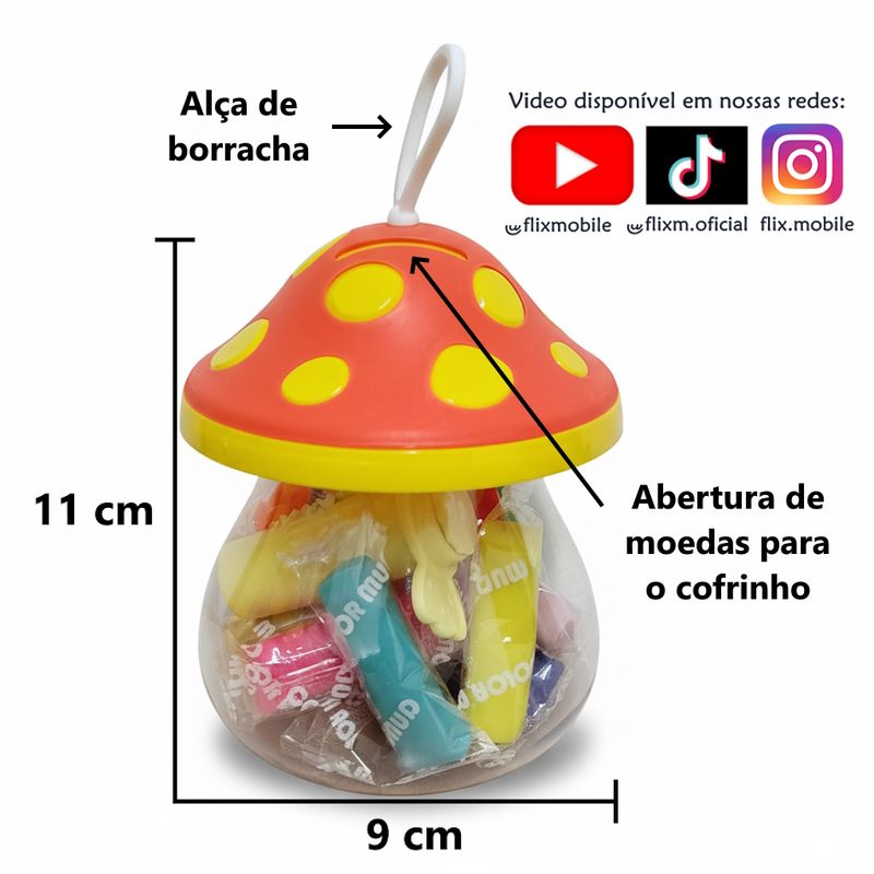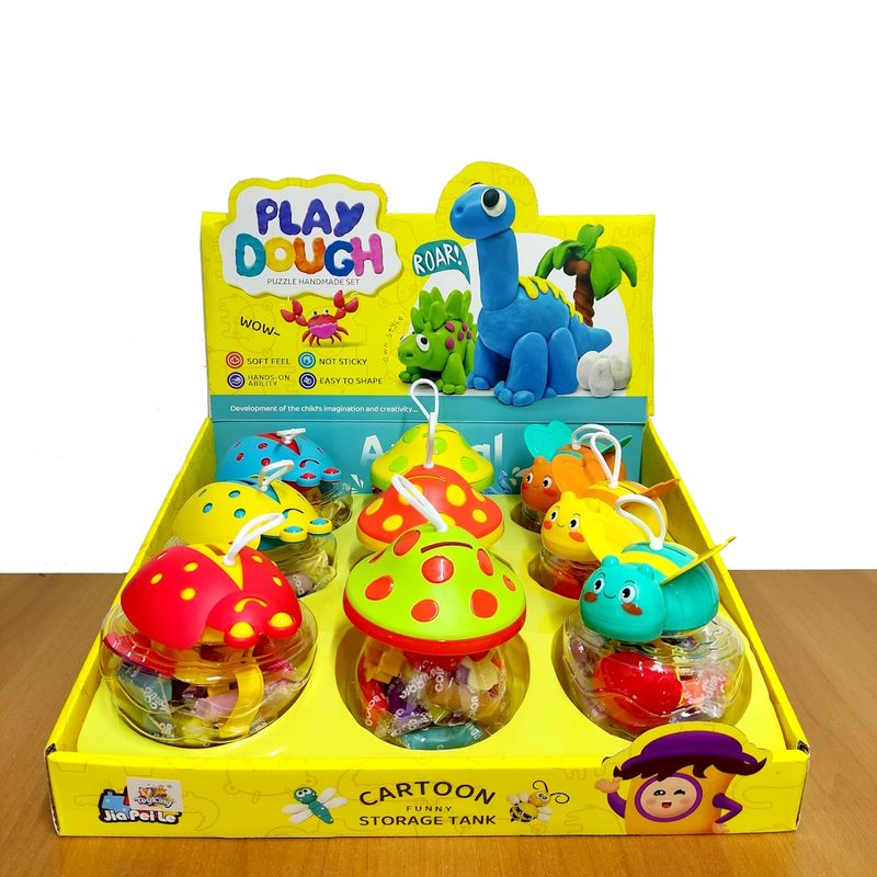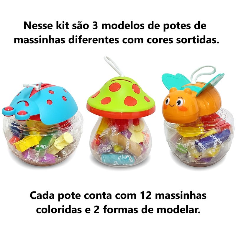 Display Pote Massinha Infantil Colorida com Acessórios Cofrinho Joaninha Cogumelo Abelha Festa Kids