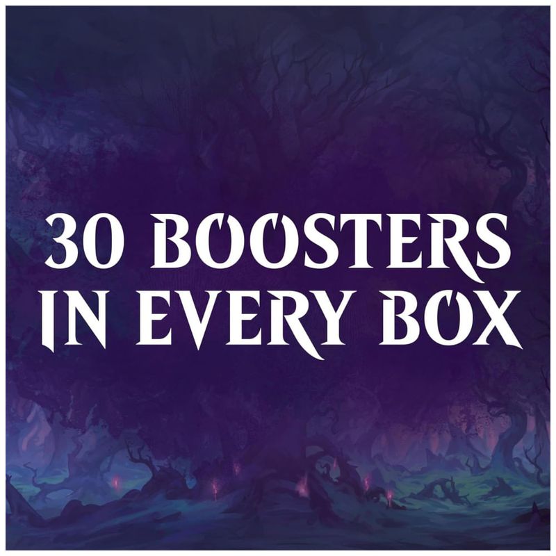 Prepare-se para uma aventura mágica com a caixa de reforço do conjunto Wilds of Eldraine! Esta caixa contém 30 boosters, cada um repleto de maravilhas e mistérios do mundo de Eldraine.