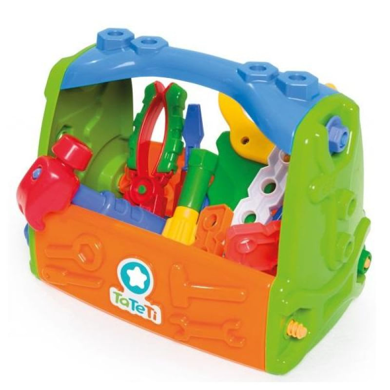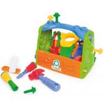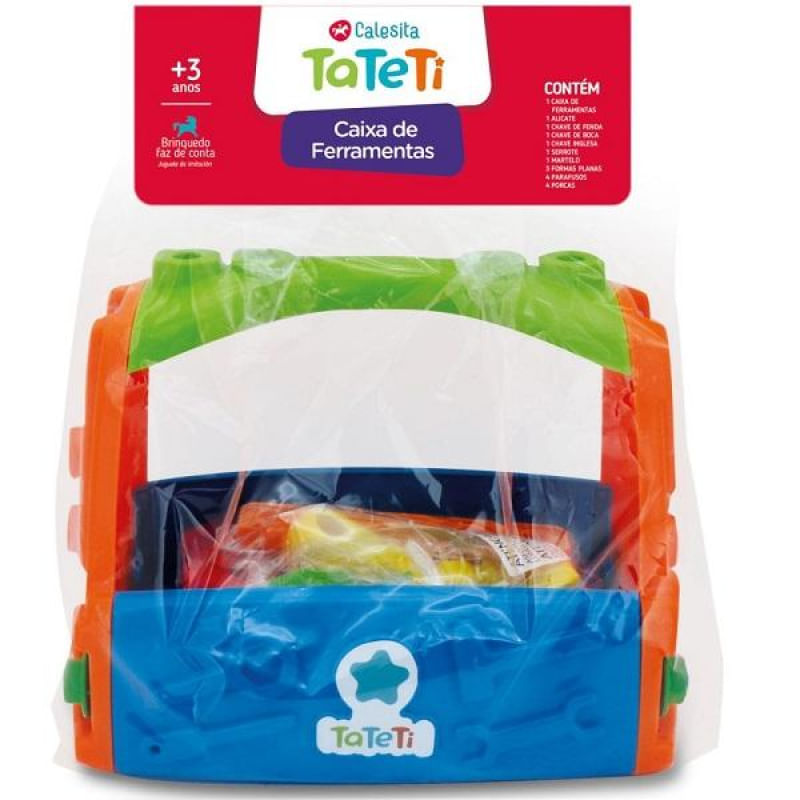 Caixa de ferramentas para criar, montar e desmontar! O kit vem com alicate, chave de fenda, chave de boca, chave inglesa, serrote que faz barulho igual ao de verdade, martelo, parafusos e porcas.