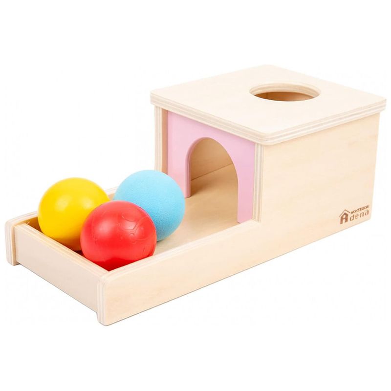 Este brinquedo Montessori incentiva o desenvolvimento de habilidades motoras finas em crianças pequenas. Com as três bolas de diferentes materiais, os bebês podem praticar a coordenação mão olho ao segurar as bolas e inseri las nos orifícios designados na bandeja.