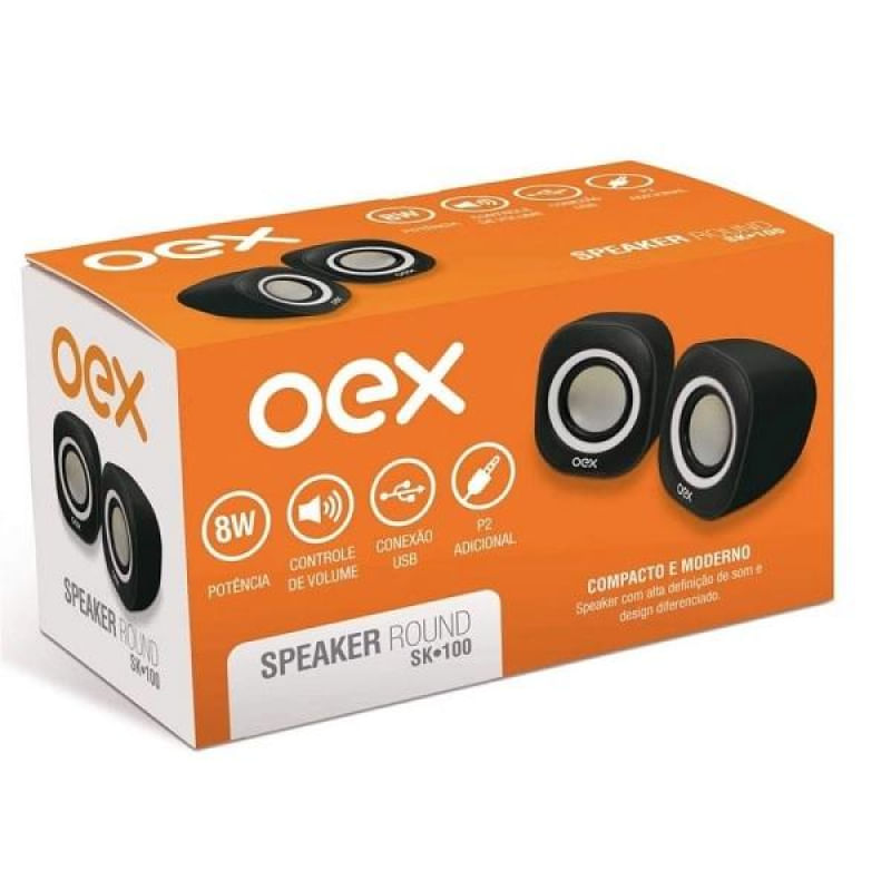 Speaker com alta definição de som e design diferenciado, ideal para desktops e notebooks! Com conexão USB e P2, controle de volume e 8W RMS de potência.