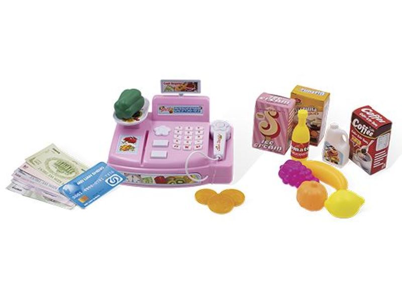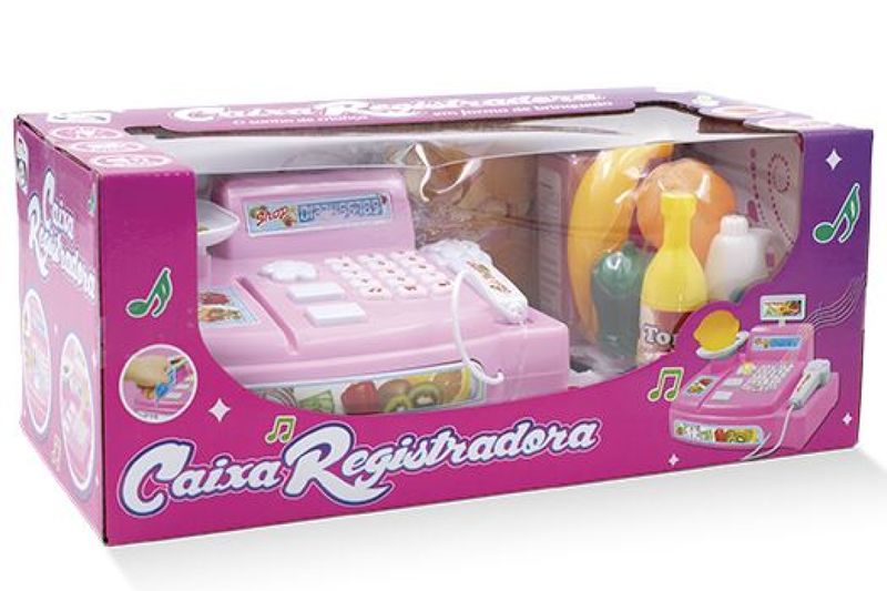 Caixa Registradora Infantil c/ Acessórios Acompanha moedinhas, dinheirinhos e produtos do mercadinho, para tornar a brincadeira ainda mais completa. Produz sons.
