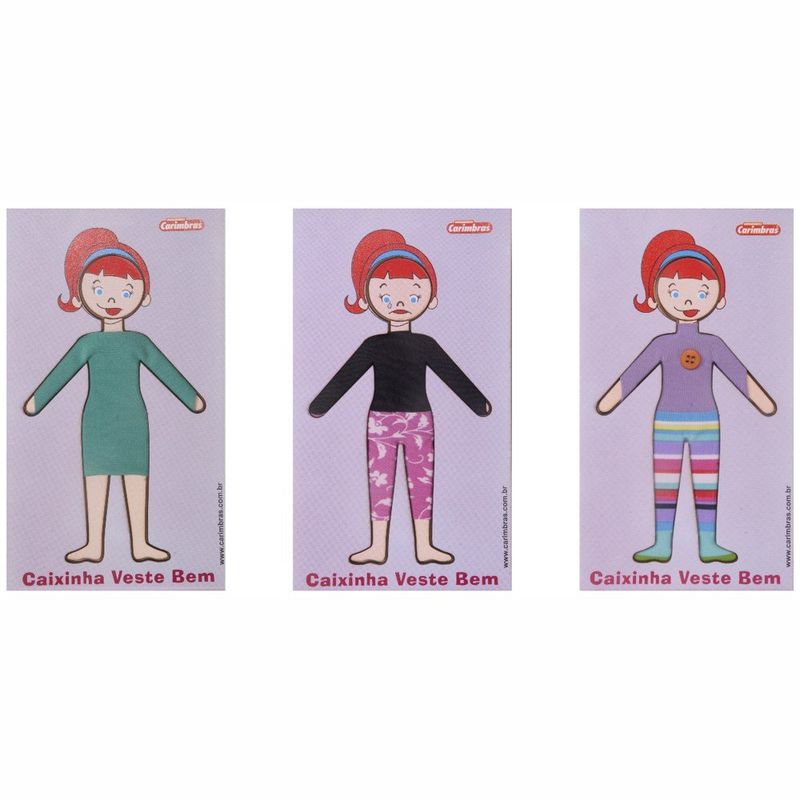 Kit composto por 1 caixa de madeira ilustrada feminina, medindo 25 x 14 x 5 cm, com 04 expressões de rosto para ser trocado conforme o vestuário e peças de tecidos.