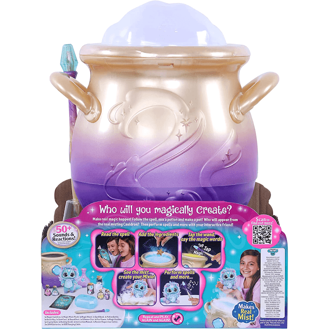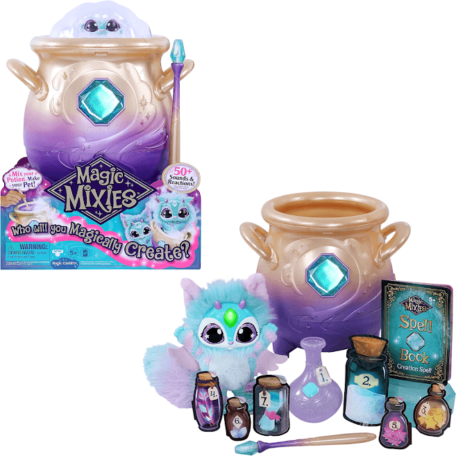 Você acredita em mágica? O caldeirão Magic Mixies proporciona uma experiência totalmente mágica e única. Você ficará surpreso ao ver o que aparecerá magicamente da névoa quando você terminar seu feitiço. Qual criatura você criará? Acompanha todos os ingredientes para fazer sua poção mágica e uma varinha especial para misturá-la e fazer um lindo amigo peludo. Tão adorável e interativo, seu Magic Mixie reage ao toque e responde à sua varinha. Eles adoram fazer feitiços com você e podem até conceder-lhe um desejo! Quanto mais você cuida e dá carinho para o seu Magic Mixie, mais forte os níveis de energia dele se tornaram. O caldeirão e seu pet vêm com mais de 50 sons e reações. E você pode até colocar seu lindo Magic Mixie de volta no Caldeirão ou colocar outros itens no estojo para repetir a revelação mágica. Conheça também o Magic Mixie azul.