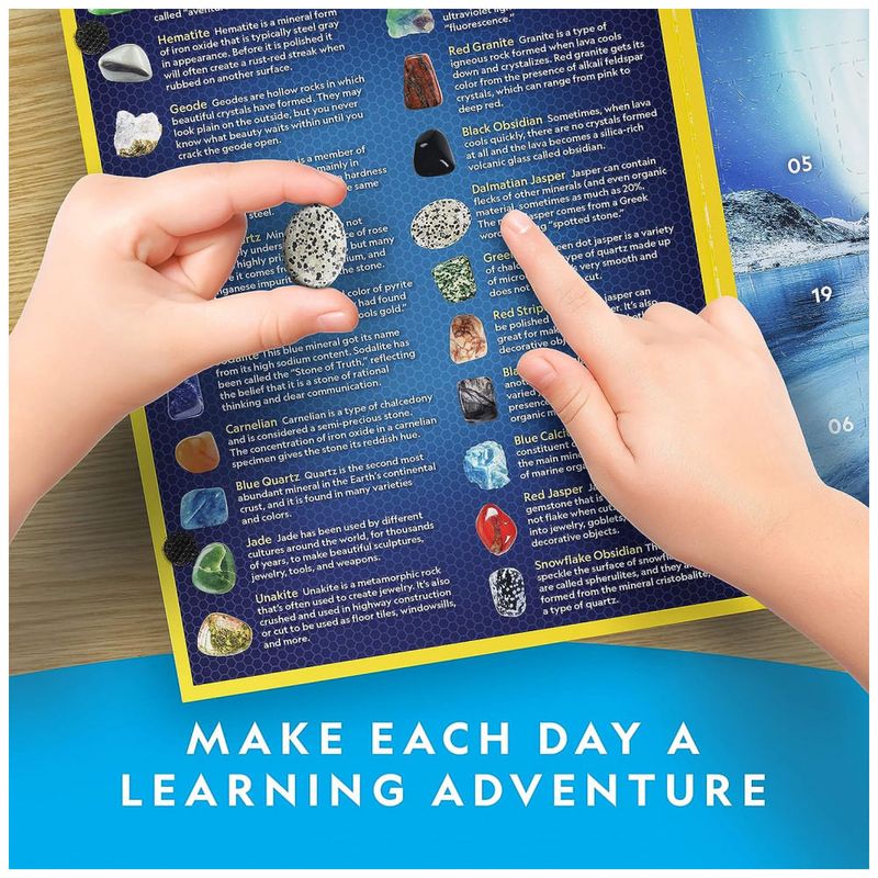 COLETE 24 GEMAS IMPRESSIONANTES As belas pedras preciosas polidas para crianças neste calendário do advento incluem ágata, aventurina verde, hematita, sodalita, turquenita, olho de tigre, calcita azul e muito mais
