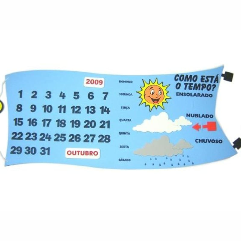 Com esse calendário preso à parede, a criança poderá marcar o dia da semana , o mês e o ano.