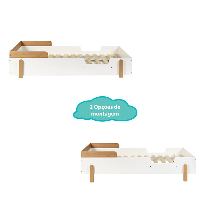 - Dupla furação, permitindo trasnformar a cama montessoriana em cama levemente alta