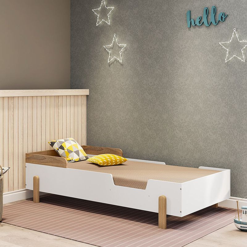 A Cama Infantil Mundo Mágico tem um design mais clean e despojado, ideal para compor o quarto infantil! Toda branca com detalhes em Madeira Eucalipto, linda e muito elegante para combinar com qualquer estilo de decoração do quarto.