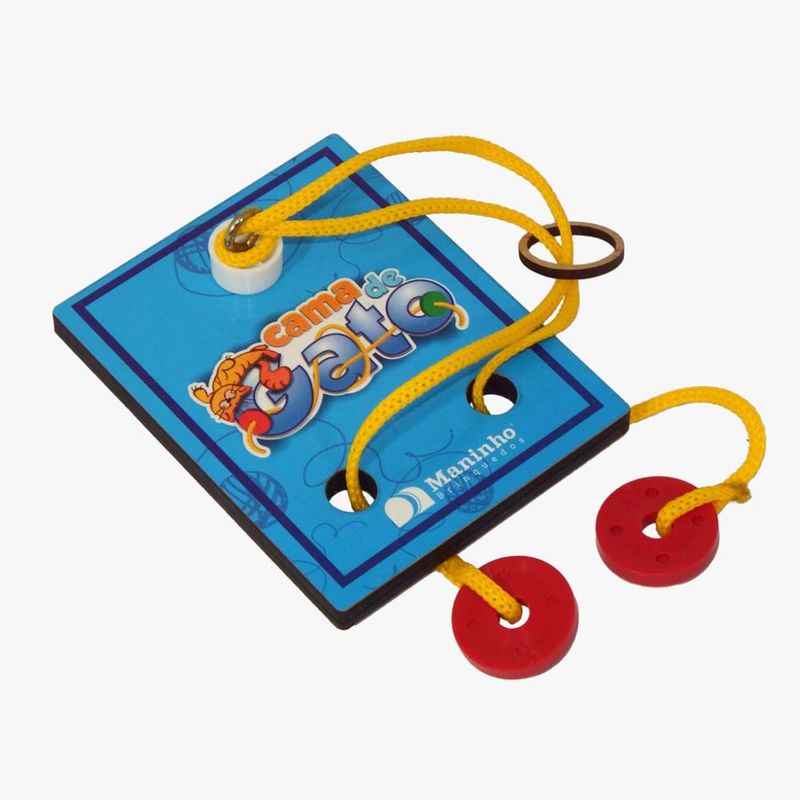 Incentiva a resolução de problemas de forma criativa. A Cama de Gato é composta por 1 Base em MDF, 1 corda de poliéster. 1 argola de MDF e 2 argolas de plásticos.Fabricante: Artesanato ManinhoMaterial: MDF com partes em plástico e metal. Por ser um produto artesanal, as cores e medidas podem sofrer alterações.Embalagem: PVC Encolhível Dimensões do produto embalado: 10 X 8 cm e 0,5 cm de espessura.Peso aprox.: 0,180 kg A partir de 9 anos