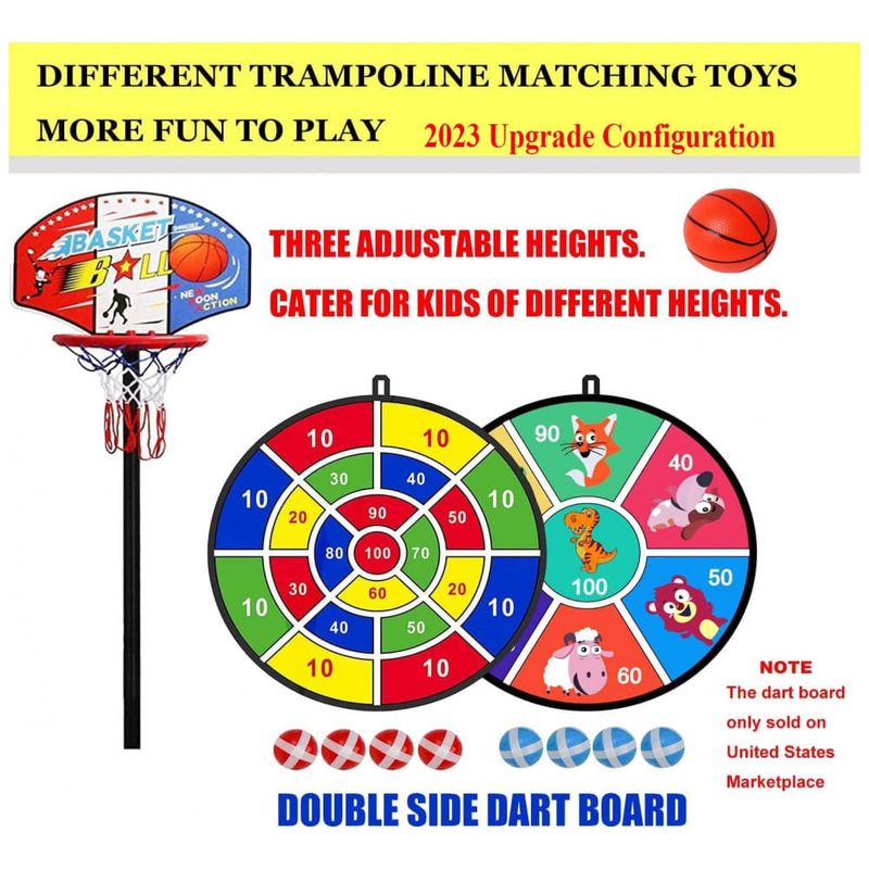 O trampolim LANGXUN inclui uma cesta de basquete suspensa ajustável e um alvo de dardos para crianças. Design multifuncional, para proporcionar às crianças mais diversão para brincar. Perfeito como um presente de aniversário e presente de feriado para bebê, criança e crianças. Perfeito como presente de Natal para crianças. Este é um grande presente como seu primeiro trampolim.