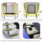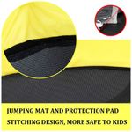 As molas pesadas de fornecem ressalto superior e são resistentes à ferrugem. O tapete de salto é feito de polipropileno de proteção UV resistente para resistência e durabilidade. O design de cor amarela torna o trampolim mais atlético e dinâmico.