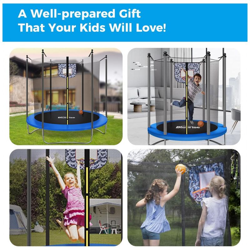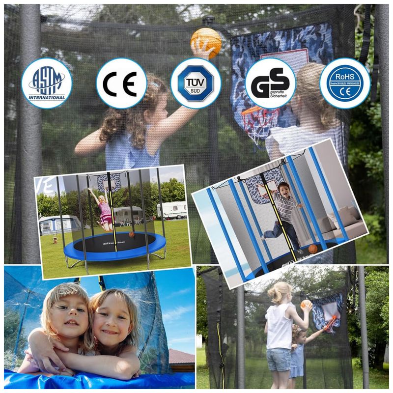 Garanta a segurança das crianças O trampolim de trompete Bluerise tem um certificado de inspeção de qualidade profissional TUV para proporcionar às crianças uma experiência segura no trampolim.