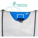 CÚPULA DE BASQUETE Inclui uma bola de basquete de espuma e é feita de materiais de jogo macios e s, com um aro separável de velcro que se prende ao trampolim usando cordões elásticos.