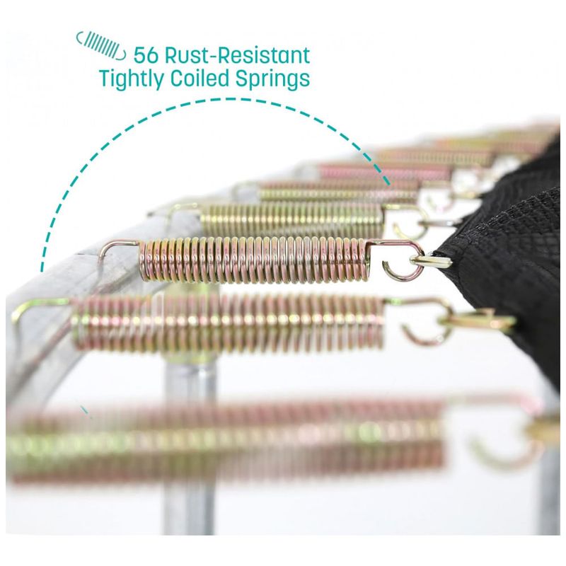 DURABILIDADE Desfrute de diversão familiar sem fim no seu trampolim com o suporte de uma estrutura de aço galvanizado resistente às intempéries e à ferrugem. Todos os nossos trampolins apresentam encaixes em T reforçados em cada perna e junta do invólucro, aumentando a estabilidade da estrutura.