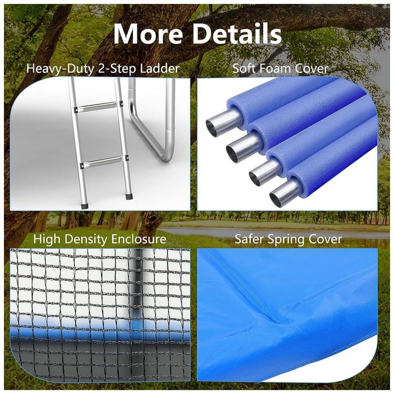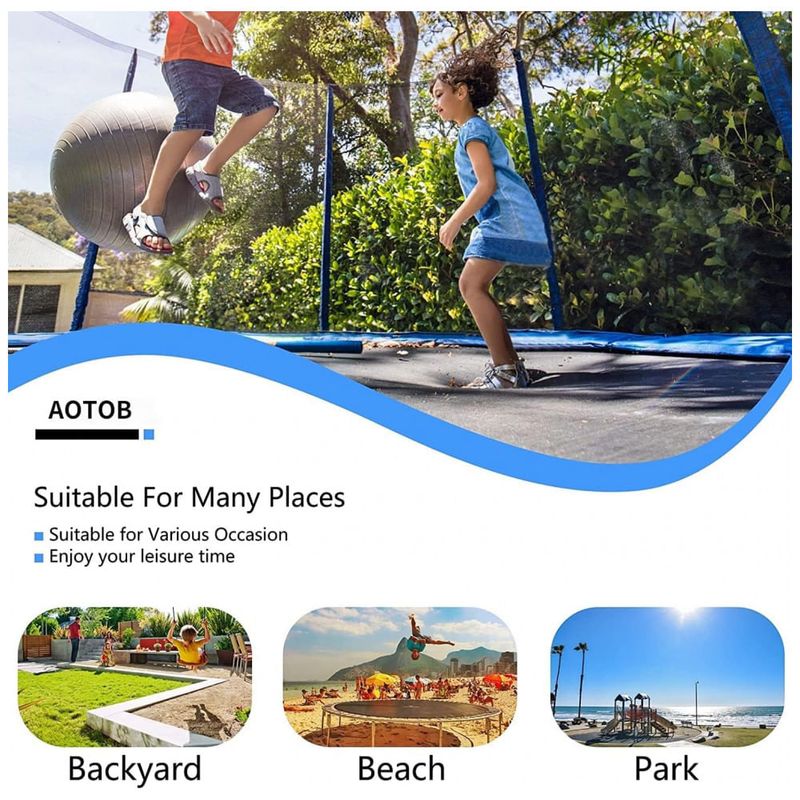 A estrutura de aço antiferrugem espessada e aumentada e 3 pernas grandes em forma de U com 6 pontos de contato equilibrados para aumentar a estabilidade do trampolim.
