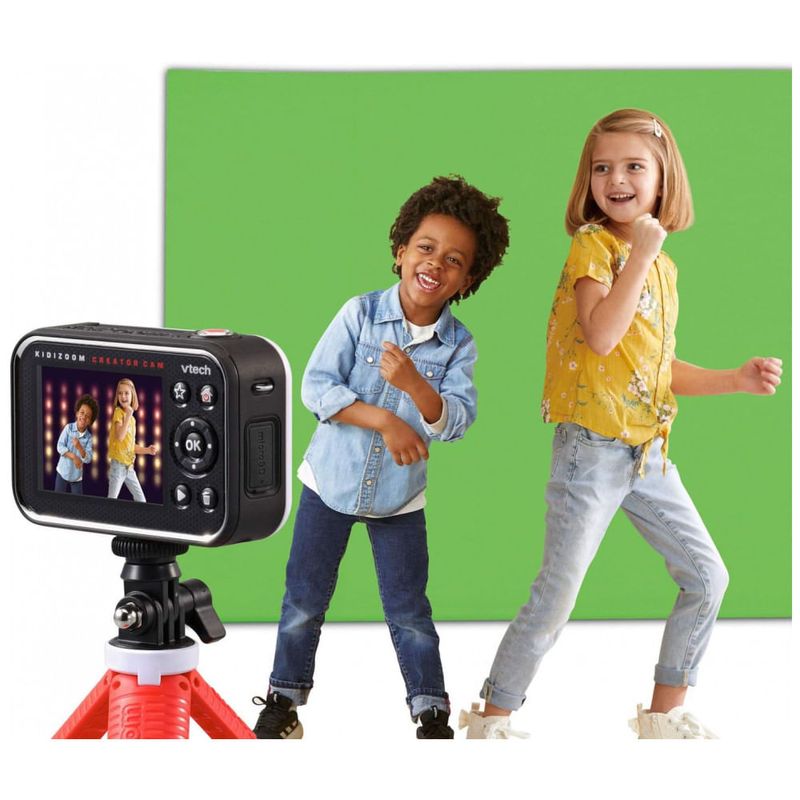 Versátil a câmera de ação troca em fundos animados 20 seja perseguido por um T Rex, vá para o espaço sideral ou torne se invisível com o tecido de tela verde incluído