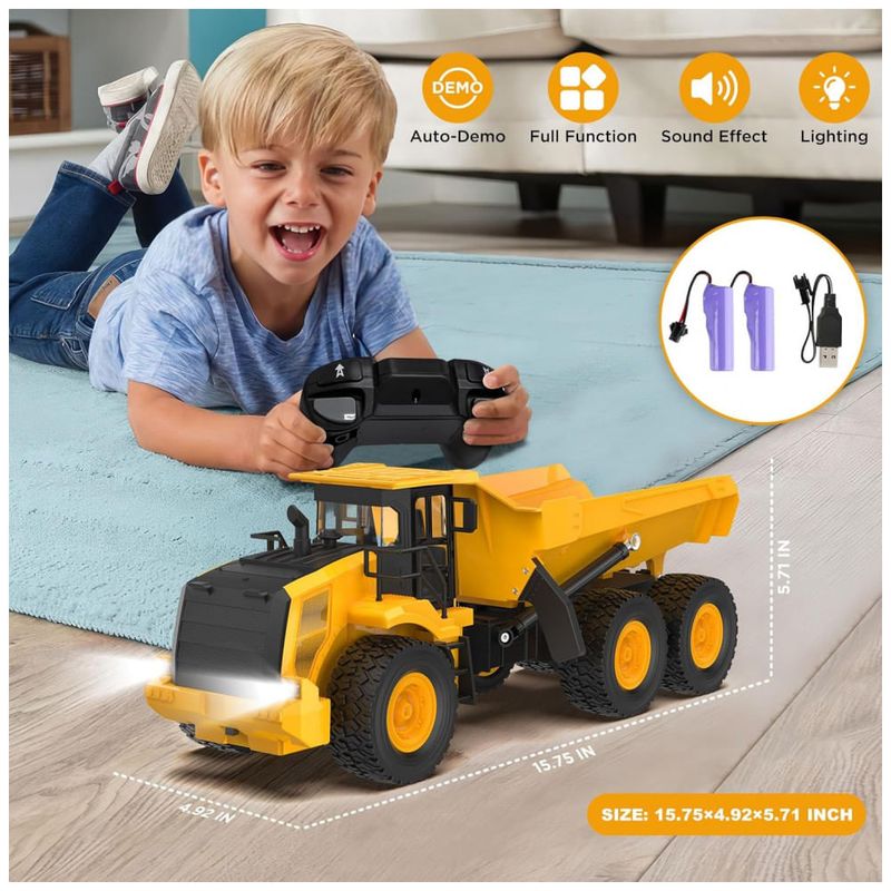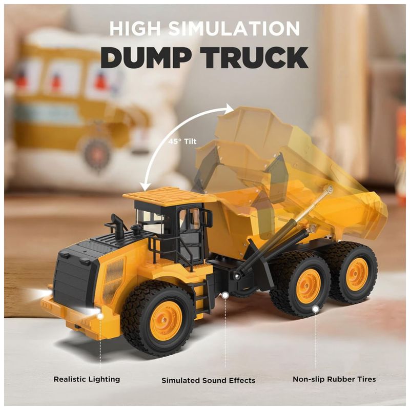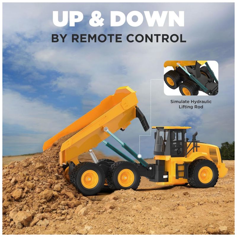 O Caminhão Basculante Poderoso com 6 Rodas foi projetado com 6 rodas duráveis e uma caçamba maior, proporcionando maior capacidade de carga e estabilidade aprimorada em comparação com caminhões regulares de 4 rodas. Experimente um veículo de construção mais potente e realista, pronto para enfrentar as condições externas mais difíceis. Controle Multidirecional com Ação Realista: Avance, recue, vire para a esquerda ou direita e veja o caminhão ganhar vida com efeitos sonoros realistas, luzes piscantes e uma função de demonstração com um clique. Este caminhão de controle remoto traz a diversão da construção para todas as direções! Desempenho em Todos os Terrenos: Com pneus de alta aderência de borracha TPR, este caminhão basculante de controle remoto pode conquistar uma variedade de terrenos, seja em ambientes internos como carpete, ou externos, em cascalho, areia ou até mesmo praia. Projetado para qualquer ambiente, garante horas de diversão ininterrupta. Vida Útil da Bateria Prolongada: Alimentado por duas baterias de lítio de 3,7V 1200mAh, o caminhão funciona por até 100 minutos (50 minutos por bateria) com carga completa. Com um tempo de carregamento rápido de 1,5-2 horas e carregador USB incluso, você está sempre pronto para a próxima aventura. Perfeito para Todas as Idades e Ocasiões: Seja para crianças de 6 a 16 anos, ou adultos que amam veículos de controle remoto, este brinquedo é perfeito para aniversários, Natal, Páscoa e muito mais. Reúna a família para horas de diversão e crie memórias inesquecíveis! Construa Sua Frota: 'Por que parar em um?' Combine com escavadeiras para operações reais no local! Dica secreta: Crianças que colecionam 3 veículos de construção mostram 68% mais interesse em STEM.