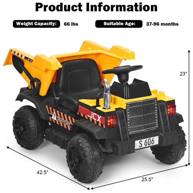 Presente perfeito para meninos e meninas: Este passeio em caminhão basculante simulou a aparência real do veículo de construção e é adequado para meninos ou meninas de 37 a 96 meses que são fascinados por construção. E as crianças podem dirigir alegremente no quintal para transportar a carga, brinquedos e assim por diante