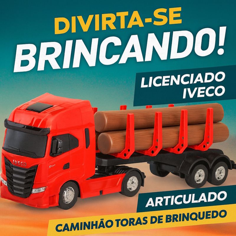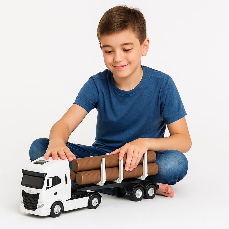 Brinquedo Caminhão Carreta Iveco Hi-Way com Toras