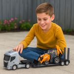Entregas rápidas e muita diversão com esse super combo cheio de detalhes e acessórios. Construído com ótimo material e pneus emborrachados da retroescavadeira, as crianças vão amar esse brinquedo. Brincadeira para as crianças e para os adultos, idêntico aos caminhões prancha que vemos nas estradas. A retroescavadeira é um brinquedo que pode brincar separado, ela desprende da carreta e vira um brinquedo á parte.