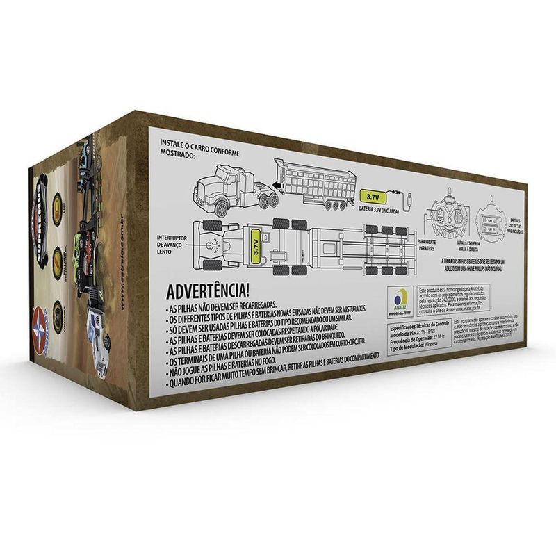 O Supremus Atlas é um caminhão cegonha de controle remoto movido a bateria recarregável e com 7 funções Sua carroceria é de plástico, e permite do cavalo se soltar da carreta, trazendo ainda mais diversão e variedade ao veículoAlém disso, inclui 4 carros de roda livre dando mais emoção e criatividade a brincadeira, possibilitando diversas aventuras terrestresSua bateria leva 2 horas de carregamento e tem tempo de uso de 1/2 hora, o controle requer 2 pilhas AAPeças: