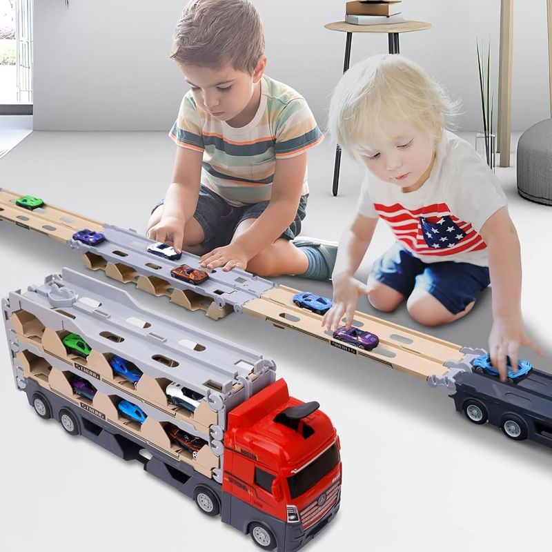 Transforme a brincadeira em uma aventura épica com o Caminhão Pista Dobrável Cegonha Garagem Fricção Carrinhos
