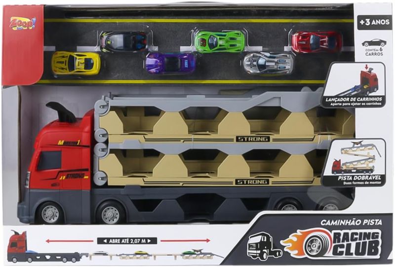 Tamanho do caminhão com a pista fechada: 45x9x23cm, perfeito para crianças acima de 3 anos.