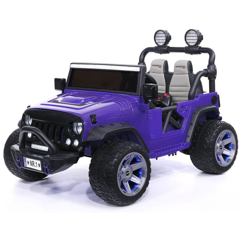 Apresentamos o melhor e mais rápido caminhão de passeio motorizado de 1 a 2 lugares para crianças de até 4 anos ou um único passageiro de até 6 anos, sob supervisão de um adulto. Com capacidade máxima de peso combinado de 45 kg, possui bateria removível de alta capacidade de 24V 9Ah, proteção contra sobrecarga e sobrecarga, 2 motores potentes, 2 velocidades para frente e 3 velocidades no controle remoto dos pais, 1 velocidade reversa e velocidade máxima de 40 km/h. Possui sistema de partida suave e freio elétrico para aceleração gradual e frenagem confiável. O banco ajustável de couro PU perfurado de duas vias com cinto de segurança conversível pode ser usado como um único cinto de segurança para 1 criança ou 2 cintos separados para 2 crianças. Controle remoto parental de longo alcance em 2,4 GHz com função de PARADA remota. Amortecedores de mola dianteiros e traseiros, kit de luz LED azul suave pré-instalado na parte inferior, pneus de espuma EVA de pista larga e zero manutenção com luzes LED garantem boa tração e um passeio confortável e silencioso. Possui um player de música MP3 integrado com streaming sem fio e rádio FM, reproduz arquivos de cartão Micro SD, pen drive USB ou dispositivos externos como iPod, iPad, iPhone ou smartphones Android.