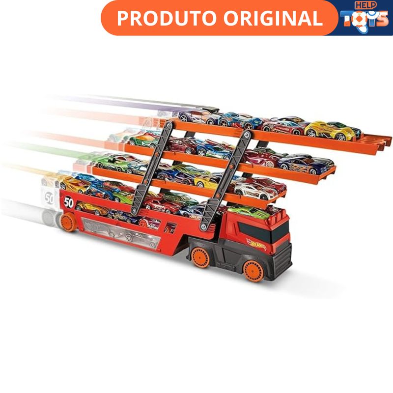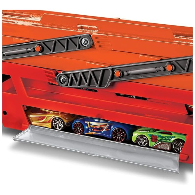 - Capacidade de Armazenamento: Transporta até 50 carrinhos Hot Wheels.