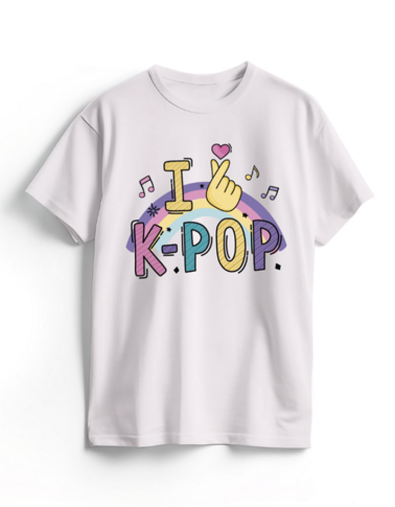 MODAROUPAS PARA MENINOSCAMISETAS PARA MENINOSCamiseta Algodão Branca K-Pop Finger Heart