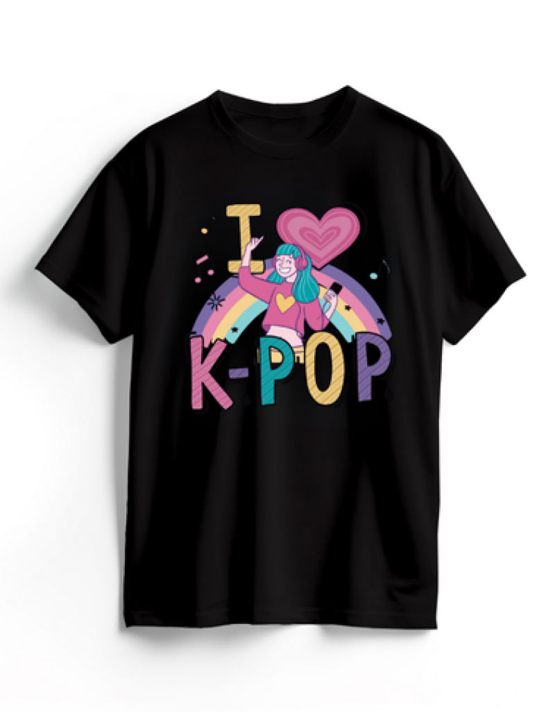 MODAROUPAS PARA MENINOSCAMISETAS PARA MENINOSCamiseta de Algodão Preta K-Pop Cute