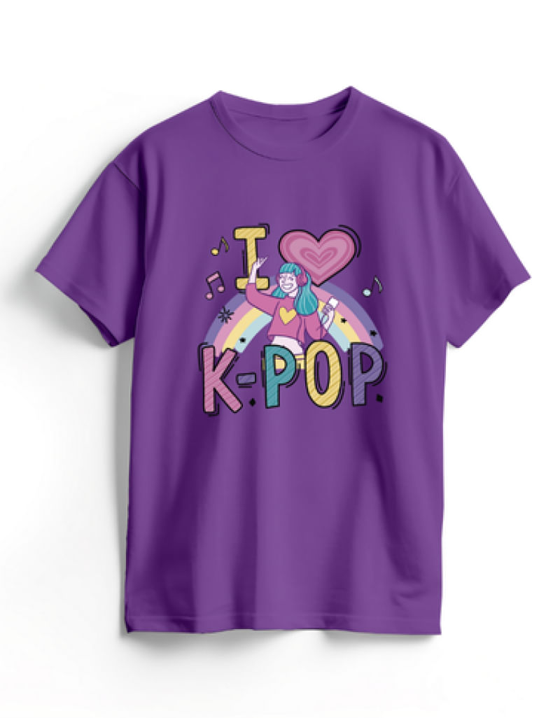 Camiseta de Algodão Roxa K-Pop Cute