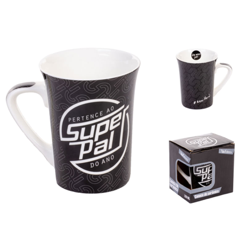 Caneca de Cerâmica Muddy Super Pai 320ml - Wellmix Informações do Produto: Uma ótima sugestão para presentear, a caneca vem com a frase "Pertence ao Super Pai do ano". Itens Inclusos: 1 Caneca. Recomendado: Manuseado por um adulto. Alimentação: Não. Material composição: Cerâmica. Certificação Segurança: Selo Inmetro. Garantia do Fabricante: 03 meses contra defeitos de fabricação. Aviso: Imagens meramente ilustrativas. As cores podem variar entre as imagens mostradas acima e o produtouto