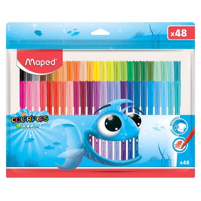 As canetinhas Ocean da linha Color’Peps têm uma ponta resistente e cores vibrantes. Elas são facilmente laváveis em tecidos ou na pele. Estão em conformidade com as regulamentações de brinquedos para uso seguro. Seu design original no tema do OCEANO e suas cores vibrantes fazem destas canetinhas o melhor instrumento de colorir para seu filho! Seus filhos vão adorar este estojo com 48 canetinhas.