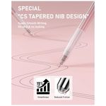 O conjunto oferece variedade de bicos, incluindo modelo ST, ponta bala, ponta cônica afilada (CS tapered) e ponta chanfrada de 4 mm nos marcadores, possibilitando alternar entre escrita, sublinhado e realce de trechos maiores. O sistema de ponta com mola interna favorece fluxo de tinta constante e linhas uniformes, reduzindo falhas durante o uso contínuo.